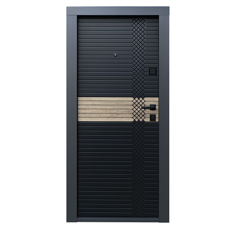 Usa de Siguranta Exterior Apartament – Securitate Premium si Estetica Moderna. Aceasta usa metalica reprezinta un standard inalt de siguranta si performanta, construita pentru durabilitate si izolare superioara. Panoul exterior MDF de 12 mm, montat peste o foaie metalica de 1.5 mm, se combina cu panoul interior MDF de 16 mm, oferind atat rezistenta structurala, cat si un aspect modern. Accesoriile sunt realizate in finisaj negru mat patrat Securemme, conferind un stil elegant si coerent. Usa metalica de apartament cu panouri MDF de 12 mm la exterior si 16 mm la interior, montate pe foaie metalica de 1.5 mm. Echipata cu doua lacate Santos/Garerra, cilindri 35×45 mm si protectii antigaurire. Izolata complet cu vata minerala si garnituri 3M, ofera 42 dB fonoizolare si coeficient termic 0.88 W/m2K. Constructie de 85 kg cu ranforsari din otel, certificata Clasa 3 antiefractie conform normelor din Ucraina.